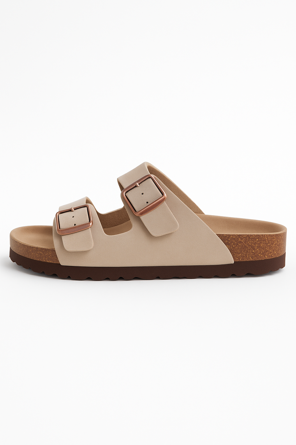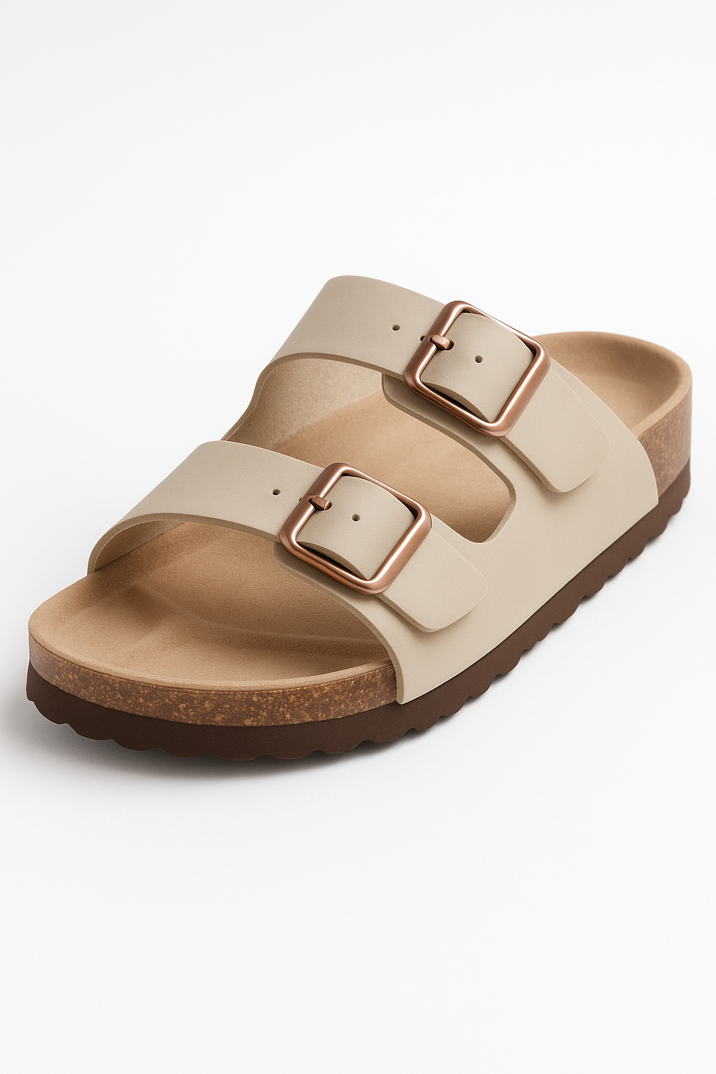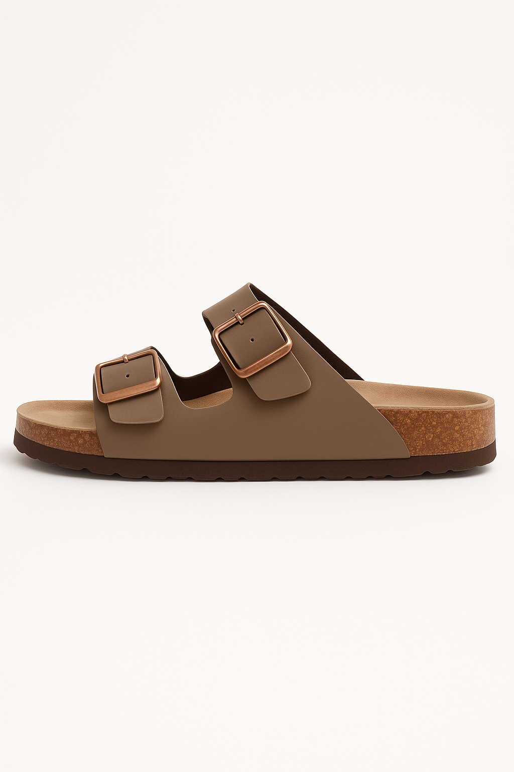 Designed with a contoured cork footbed and smooth PVC upper, these women’s slide sandals offer breathable comfort and a secure fit with an adjustable buckle strap. Perfect for casual summer days, beach outings, or relaxed homewear.